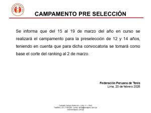 Nenhuma - NI / 06 Mar - 08 Mar 2026Creado por Tenis Perú Inscripciones cerradas