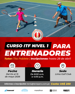 Requisitos: Certificación Play Tennis Costo: USD $250Informes e inscripciones: tenis@tenisperu.com.pe